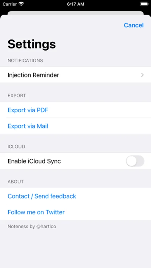 Create reminders for your injections. Reminders can be set for every day, every second day and for custom weekdays.