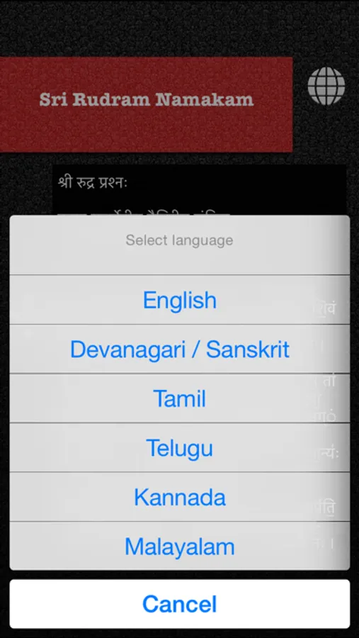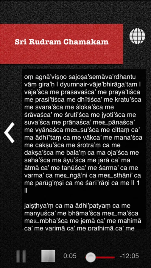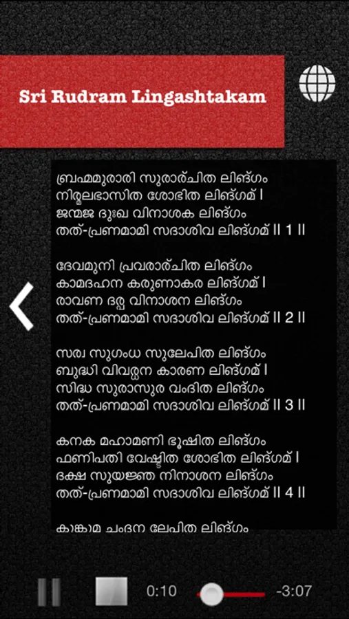 * Lyrics available in English,Thamil ,Sanskrit,Telugu,kannada & Malayalam (User can select different languages for lyrics using world icon in the top left corner).