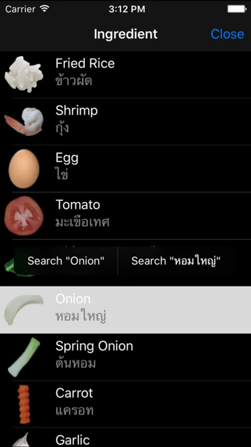 - View menu ingredient.