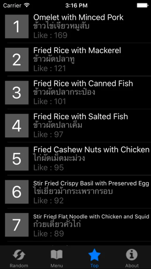 - Like your favorite menu and view top like menu.