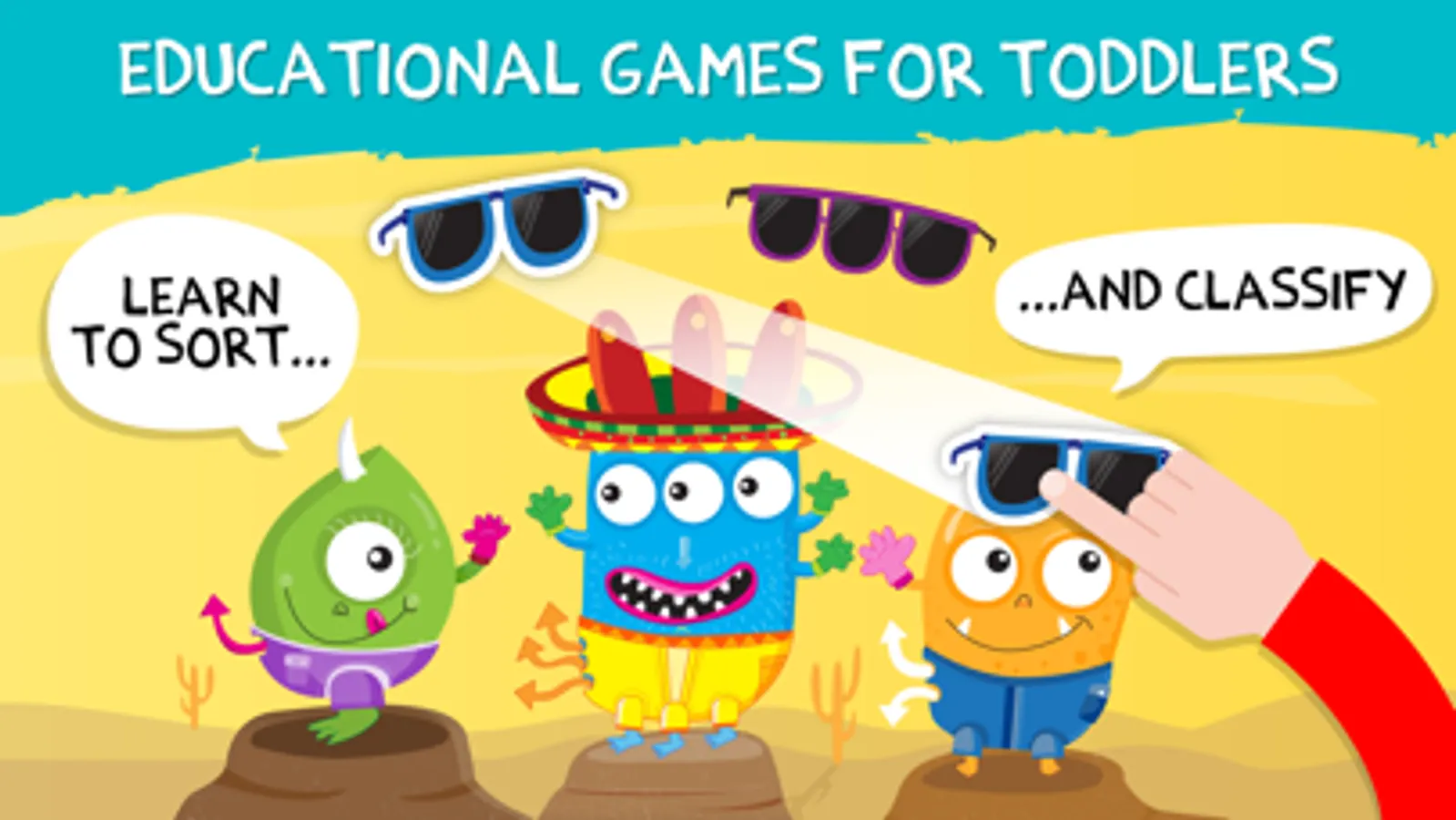 This game is intended for toddlers aged 3+. The game presents 12 boards each focused on developing a set of basic concepts such as size, colors, numbers and patterns using everyday objects from the child's world such as clothes, food and many more.