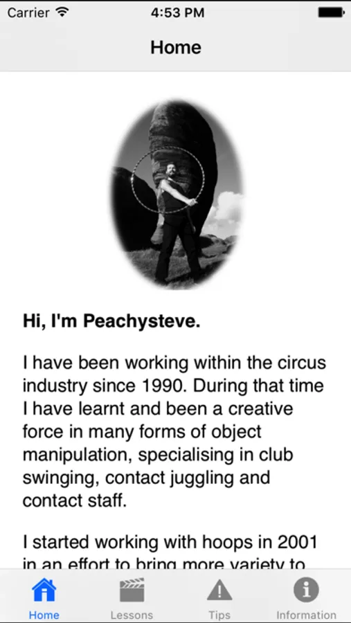 For over 15 years, Peachysteve has been teaching people juggling, object swinging and manipulation, and in that time has developed techniques to help people to easily understand how to go about learning new skills. "Learn to Hoop" will have you spinning your hoop in minutes, and addicted in just a few more.