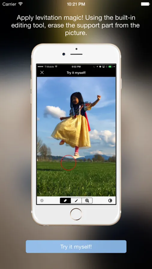 Levitagram uses a soft brush bigger than your fingertip without sacrificing performance, so that you can see what you are doing to make a precise edit. Levitagram is the only app support flexible brush shape settings to help you make pixel perfect levitation photos.