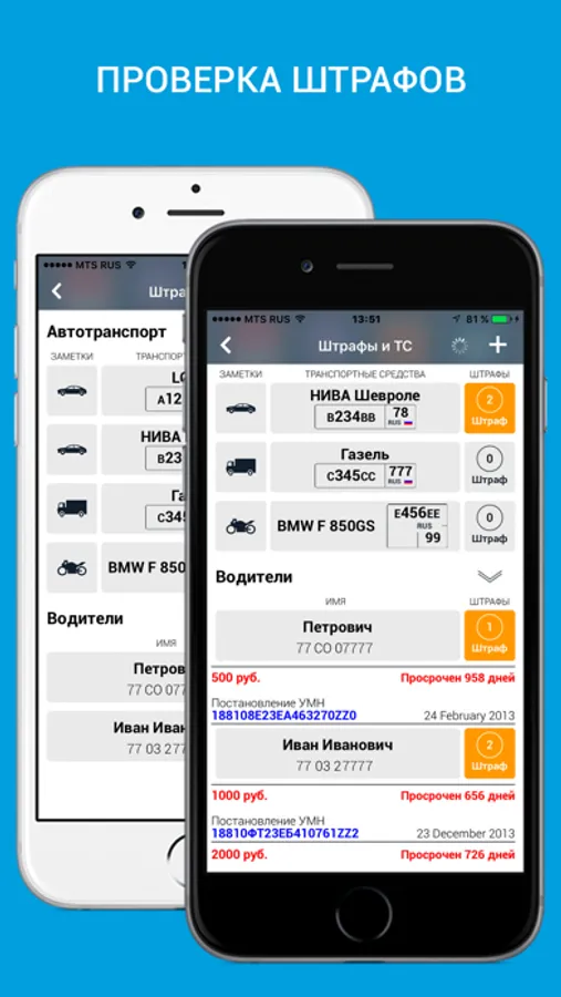- ШТРАФЫ (Проверка по водительскому удостоверению и номеру свидетельства о регистрации ТС и оплата) – доступно при обновлении