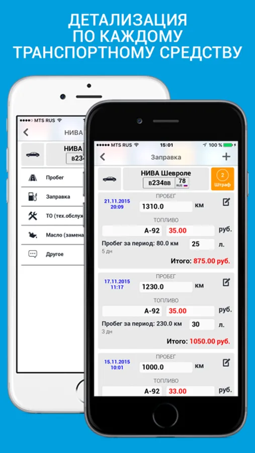 - Расход топлива и пробег (Вы можете контролировать пробег вашего автомобиля с учетом количества топлива «Литры» и суммы затрат в «Руб».) – доступно при обновлении