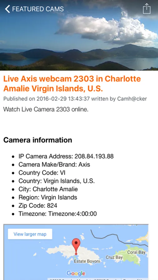 The Webcam location is at first guessed based on the IP Address and almost every webcam sends a continuous live stream feed.