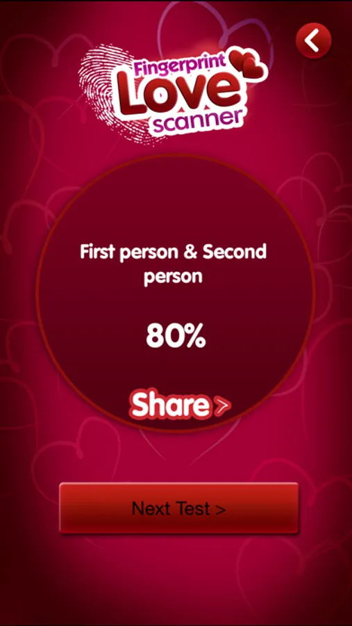 After scanning your fingerprints, the love meter will generate a love compatibility percentage, which you can then share with your friends by email or through Facebook.