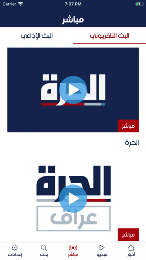 5. البث المباشر لقناتي الحرة والحرة عراق.