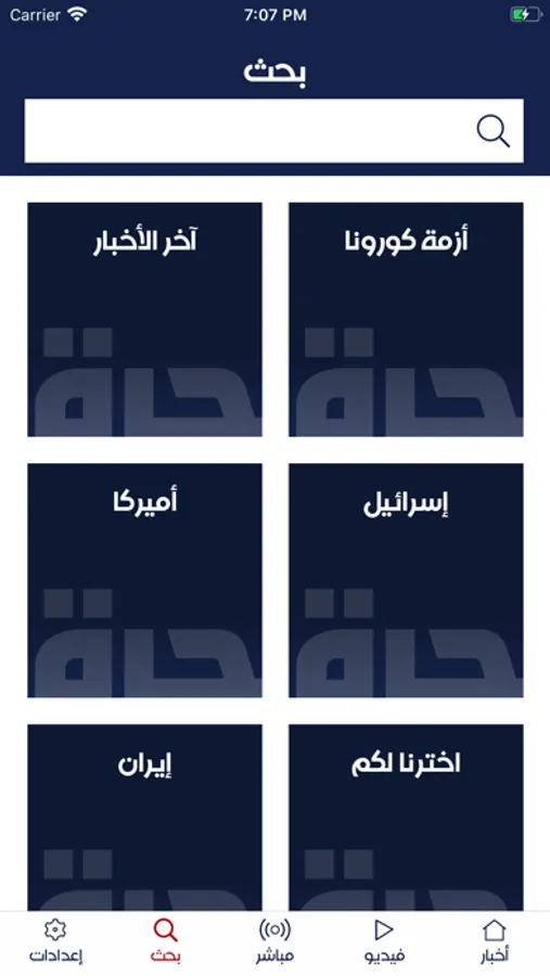 2. تحديد الموضوعات التي تهمك لمتابعتها تحت خانة "أخباري".