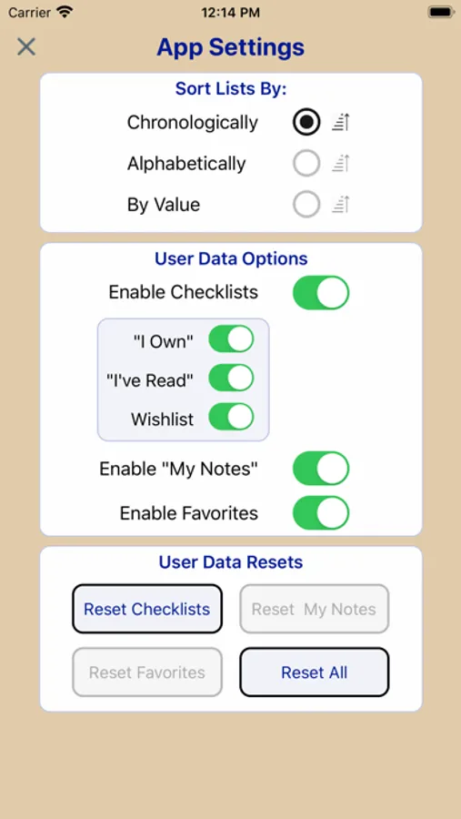 - User customization; including chronological or alphabetical ordering of lists, etc.