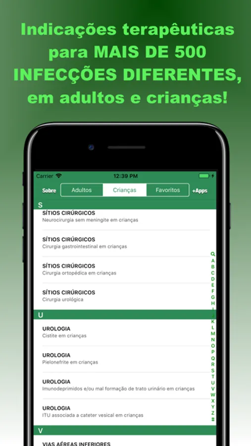 - Indicações terapêuticas para MAIS DE 500 INFECÇÕES DIFERENTES, em adultos e crianças, todas baseadas em consensos BRASILEIROS, das sociedades de especialidade reconhecidamente qualificadas (Soc. Brasileira de Cardiologia, Soc. Bras. Pediatria, Soc. Bras. Pneumologia e Tisiologia, Soc. Bras. Otorrinolaringologia etc).