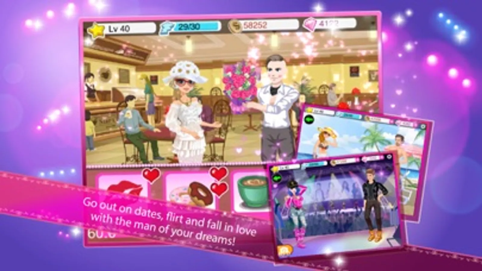 Of course, any star needs an active social life, so hang out with your friends and go on dates with the hottest guys in town to find your perfect match. You can even take photos and share them with your Facebook friends!