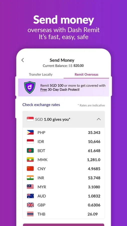 Whether in-store or online, locally or overseas, make secured and easy payments with Dash. Need to send money home? It's fast, easy and safe to transfer money with Dash. You can also protect yourself and your loved ones against unexpected events with the suite of savings and insurance products available on Dash.