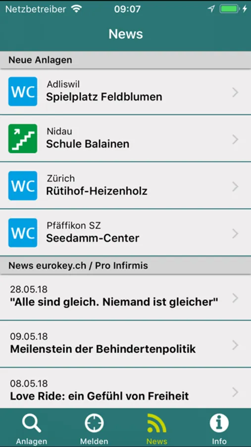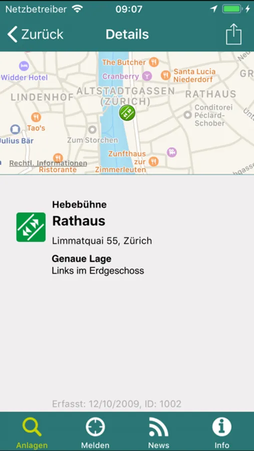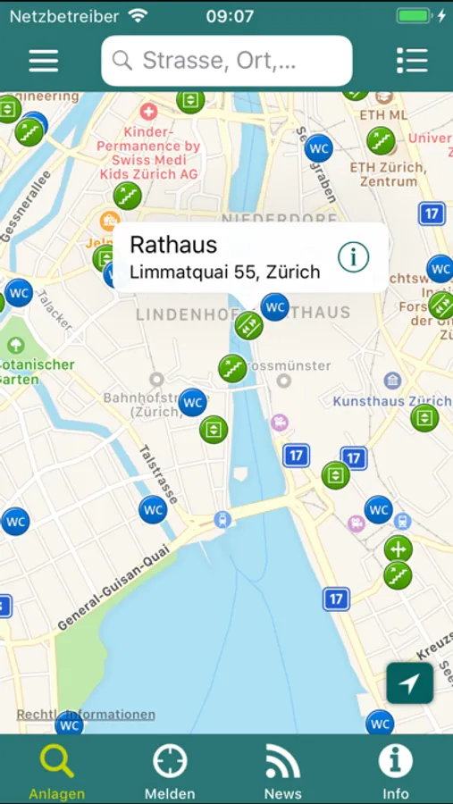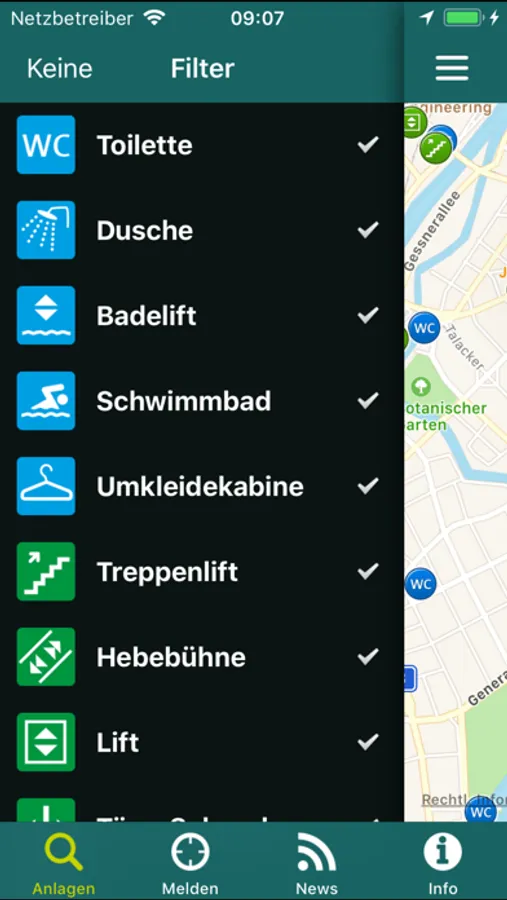 − Detail-Informationen zu jeder Anlage mit Karte, optionalem Routenplaner und Feedbackmöglichkeit