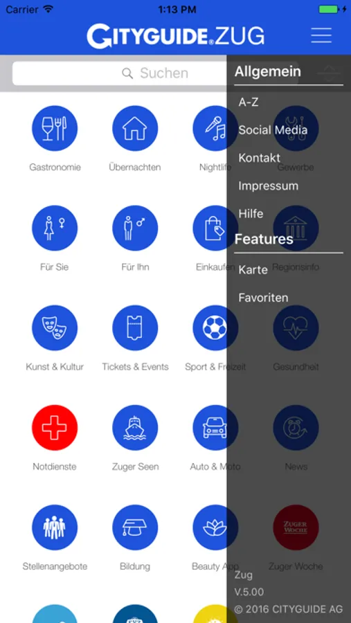 EINIGE FEATURES DES CITYGUIDE Zug IM ÜBERBLICK: