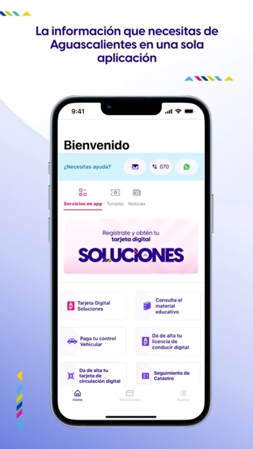 En la app Aguascalientes Digital puedes realizar algunos trámites: Pago de Control Vehicular, Alta de Tarjetas Soluciones, Alta de licencia de manejo, Alta de tarjeta de circulación así como las noticias sobre los sucesos más importantes que emprende el Gobierno del Estado y eventos que se llevaran a cabo en el estado y municipios.