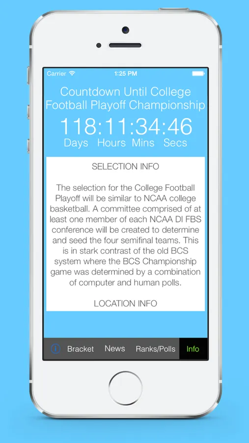 Includes a bracket making system that allows you to create your own mock College Football Playoff brackets. Create 4 team brackets and share your estimate for the future college football playoffs. You can also use this bracket making system to create brackets for any event.