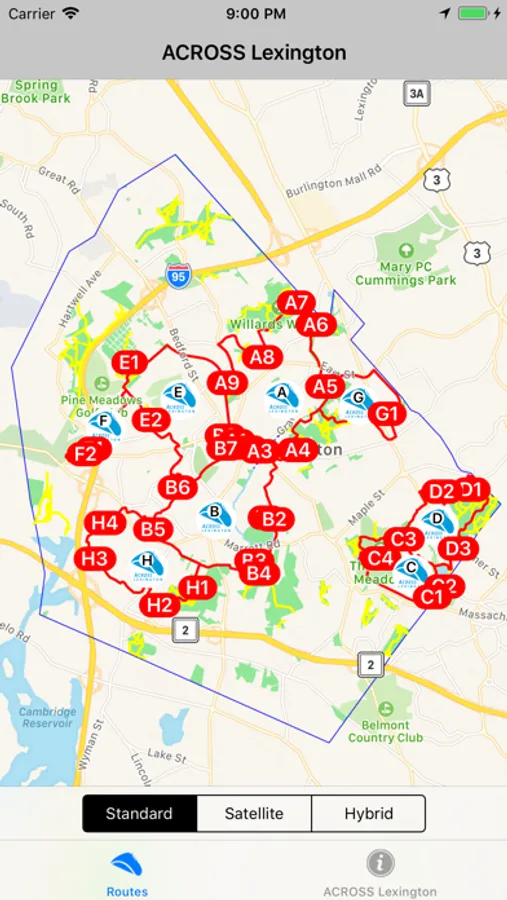 ACROSS Lexington stands for Accessing Conservation land, Recreation areas, Open space, Schools and Streets and is a 47-mile network of pedestrian and bicycle routes that link most of the town of Lexington, MA.