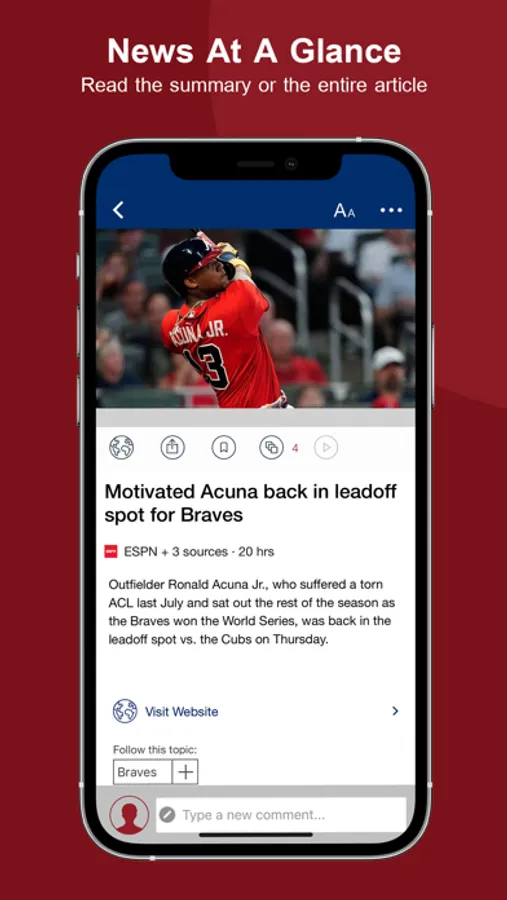 Our app brings together top baseball news from trusted sources like ESPN, EA Sports, Rotowire, and more. Say goodbye to sifting through repetitive stories. With a single tap, you can see all sources that covered any story, giving you a clean feed of the latest updates.