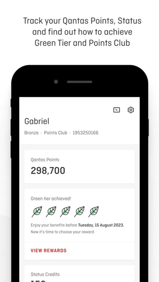 • See your Qantas Points activity and keep track of your Status Credits and tier progress