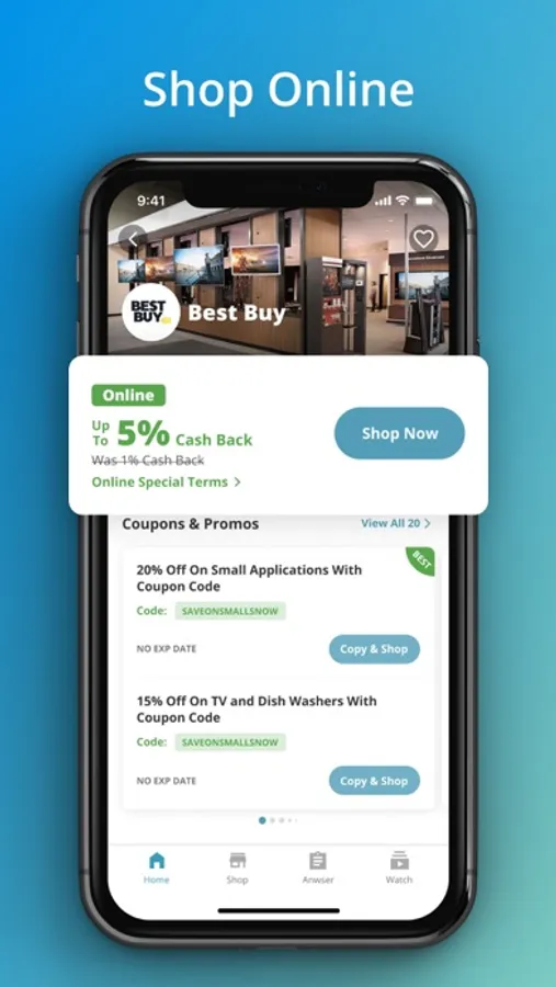 Score money saving deals with cash back shopping at your favorite stores like Amazon, Walmart, Kohls, Macys, Booking.com, Hotels.com, The Home Depot, Lowes, Best Buy, and thousands more. Shop at your favorite merchant through Swagbucks and get 1% to 80% Cash Back on every purchase by shopping in-store or online. Cash Back rate varies by merchant. See individual merchant page for full terms. Plus find all the latest sales, deals and promo codes from brands you enjoy, from a fancy room at the Hyatt to a new pair of Nikes to a pack of diapers at Walmart.