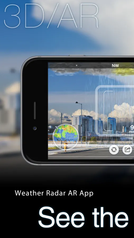 - Amemil has three modes: "2D" for map display, "3D" for AR display, and "Satellite Eye" for a bird's eye view of the weather from above.