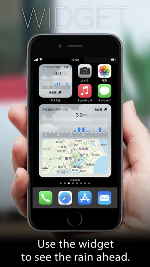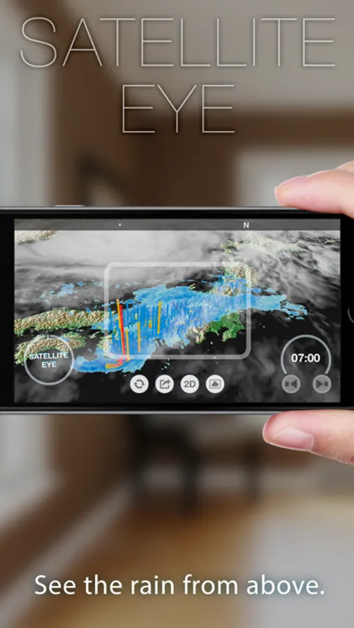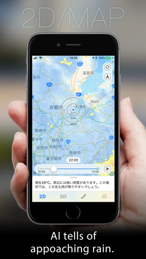- The "Satellite Eye" function allows you to view rainfall conditions across Japan, and by moving your iPhone, you can experience a realistic image as if you were looking at it from a satellite.