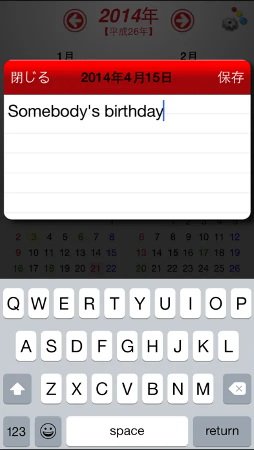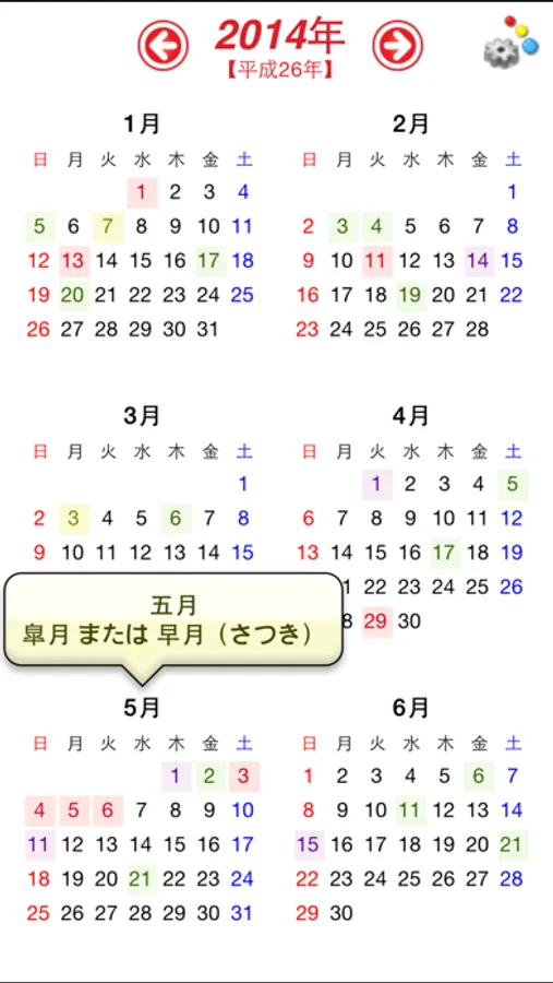 ・日付をタップすると、祝日と星座などの情報がツールチップで表示します。