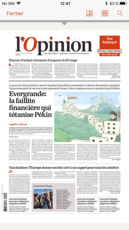 L’application de l’Opinion permet à la fois de consulter une sélection d’articles et de vidéos choisis par la rédaction, de consulter le journal en version numérique et d’avoir accès à l’intégralité de nos archives. Les articles verrouillés nécessitent d’être abonné afin d’y accéder.