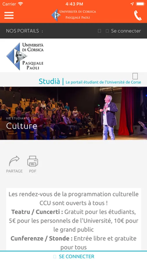 L'application officielle de l'Université de Corse Pasquale Paoli :