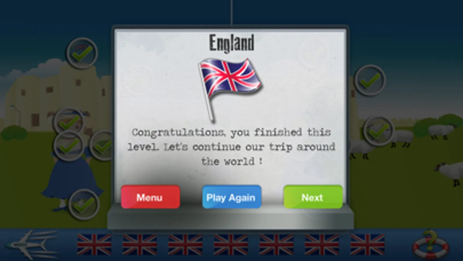Thanks to this application your kids can travel around the world without leaving home! They will learn country names and associate them with the corresponding flag while playing!