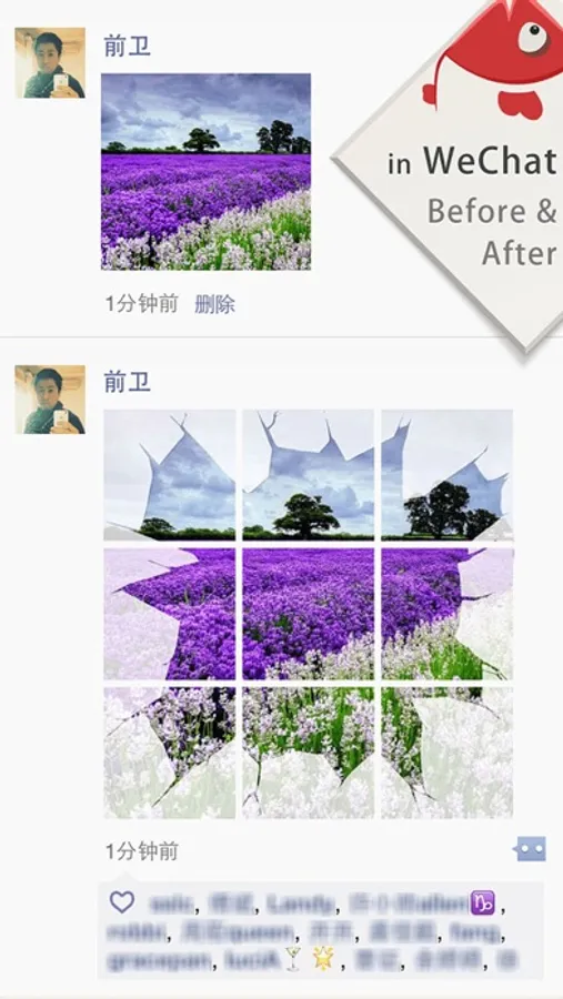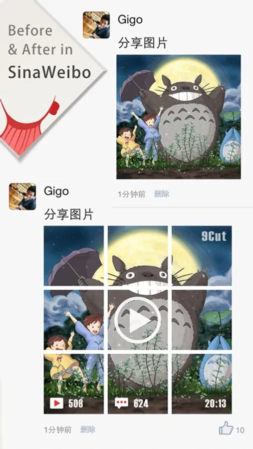 4. Go to apps as WeChat, Sina Weibo, Qzone, Facebook, which support muti-image-uploading to choose slices in sequence and upload.