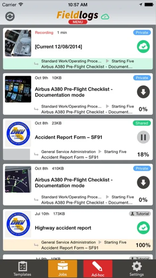 In the same vein as templates, Jobs can capture everything around you through video, pictures, voice, or simply your own comments. Jobs can also track if desired a discrete or continuous GPS track hence rendering the context in an even more vivid manner.