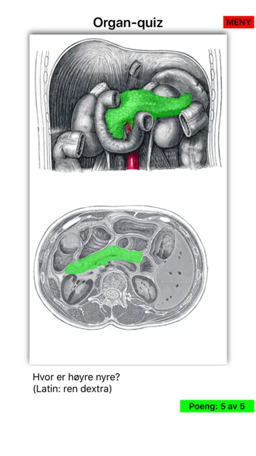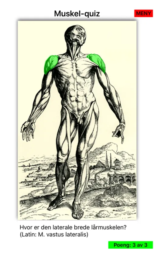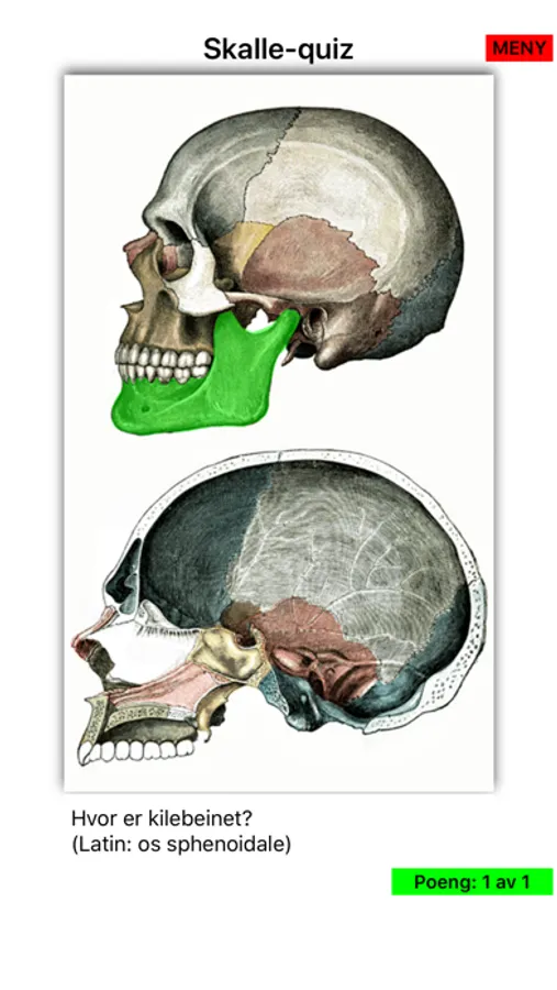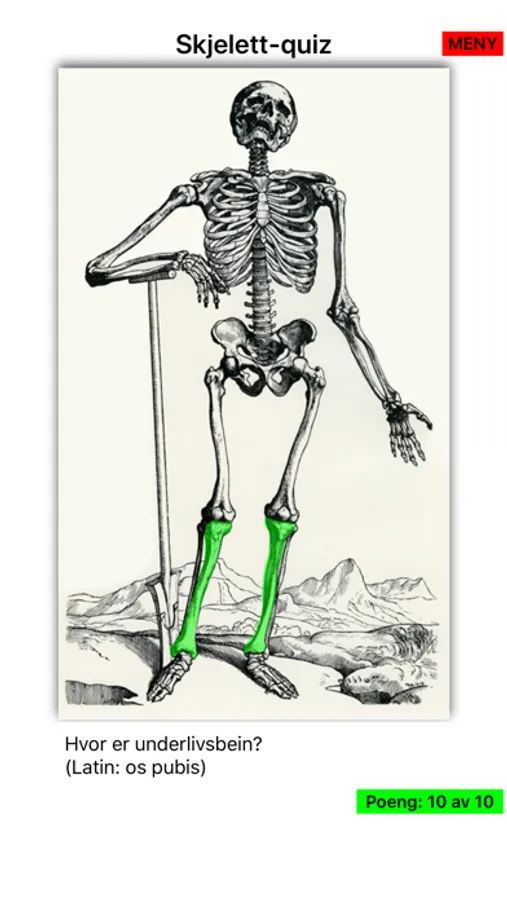 Anatomi på Norsk bruker interaktive quizer om menneskekroppen for å lære anatomi på norsk og latin.