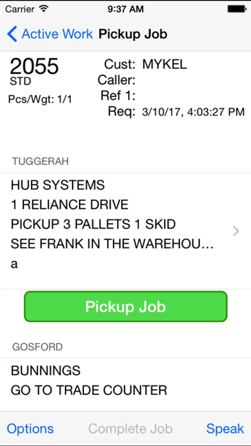 Users can log on from their iPhone or iPad to receive work, message, query jobs or enter POD's against jobs and have the information push back to the transport companies FMS system. Despatchers can follow your progress through their FMS Advanced Despatch application and because of the constant GPS updates will be able to more efficiently allocate work. But please remember continued use of GPS running in the background can dramatically decrease battery life.