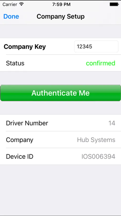Once the App has been installed, contact the transport company you work for to get their company ID number. Enter the ID number into the setup screen and tap the Authenticate button to request access to their system. The despatchers will then accept your request to access the system, tap Authenticate again and you will then be able to login with your password ready to work.