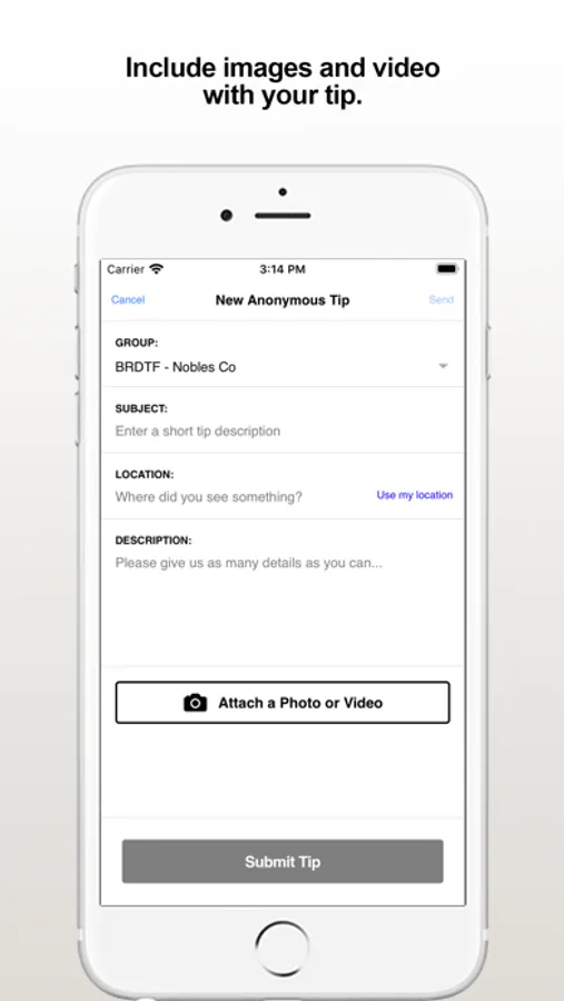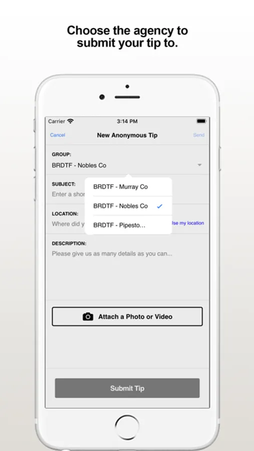 The BRDTF Tips app provides citizens the ability to submit anonymous tips to the Buffalo Ridge Drug Task Force. Key Features Include: