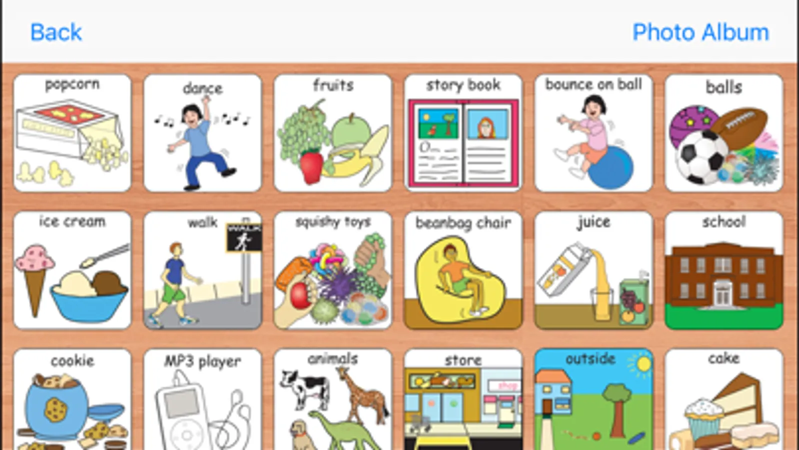 To delete an image from the library, tap the picture and hold for 3-5 seconds until a miniature "Delete ?" screen appears. The pre-loaded Pics for PECS images may be temporarily deleted during a single session. However, after a session has ended and the application is closed the pre-loaded Pics for PECS images will reset to their original properties (reappear) when the application is opened and a new session has started. Custom images will not be restored and are permanently removed from the app once deleted.