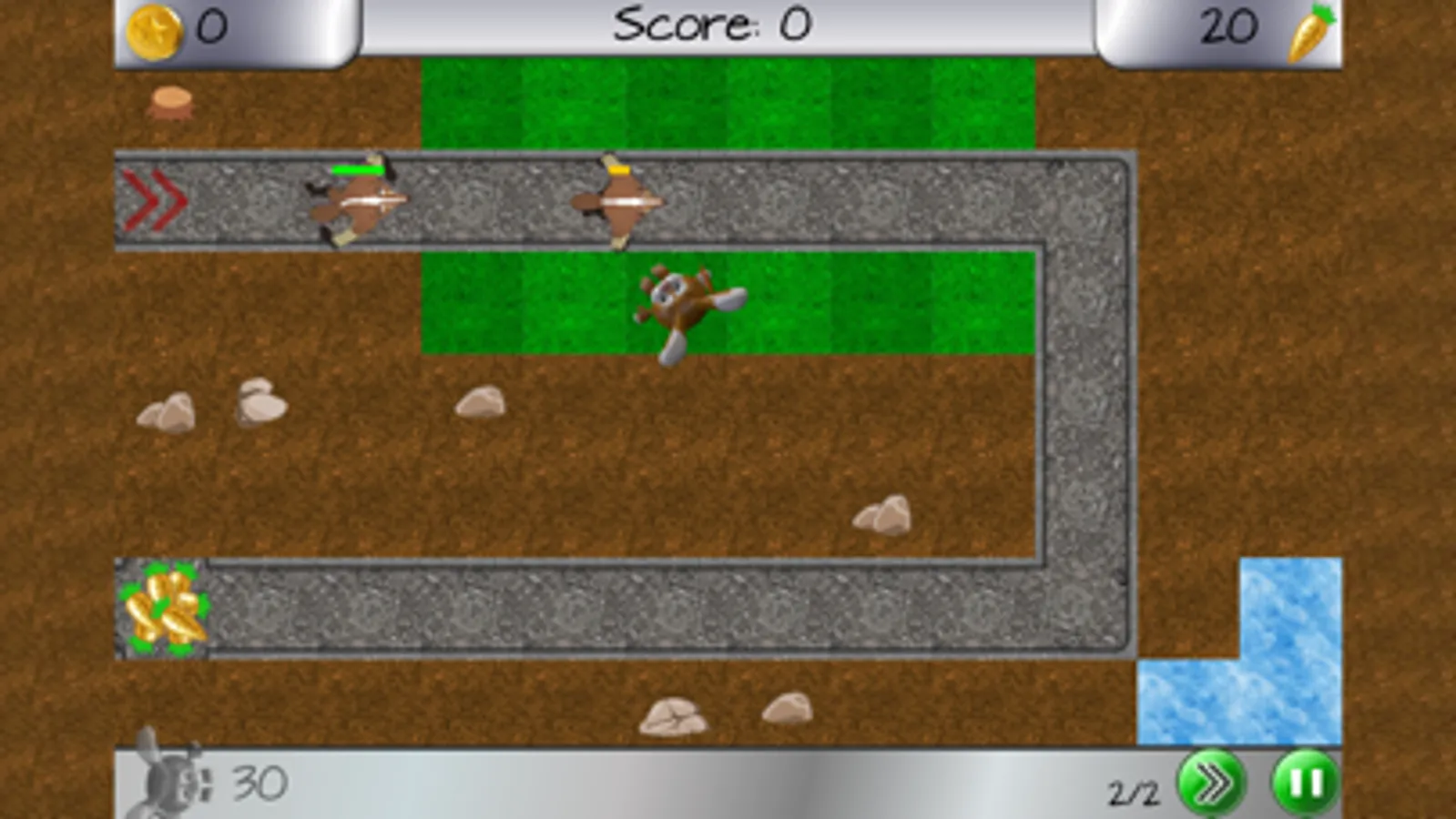 Help the Wabbits defend their golden carrots! The badgers, bobcats, foxes and bears are attacking - use your best strategy to place the Wabbits and stop the enemies in their tracks!