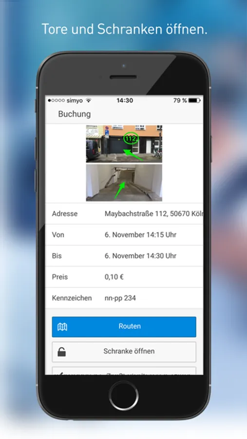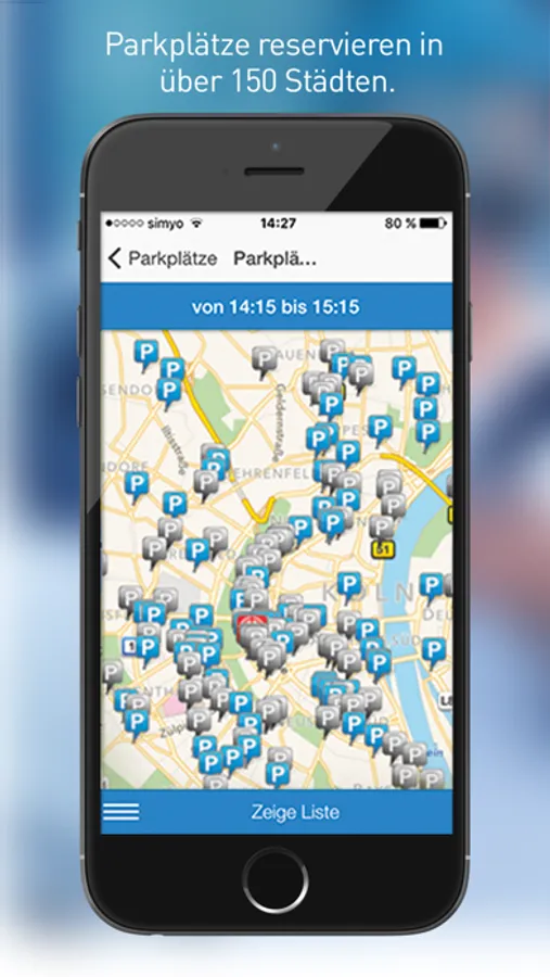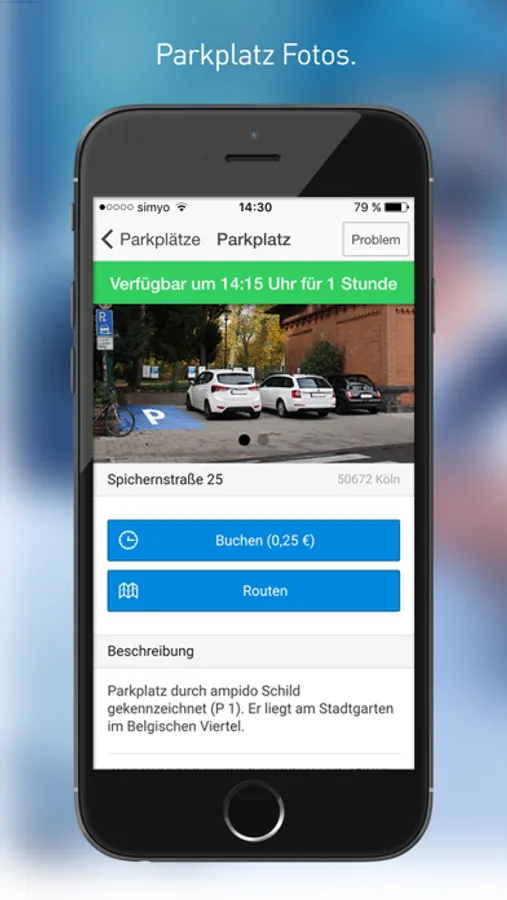 Stern „Parkplätze per Klick im Voraus buchen!"
