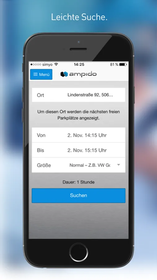 Die Plattform ampido.com bietet die erste deutsche Parkplatz-Sharing App, mit der Besitzer von privaten Parkplätzen oder Garageneinfahrten diese Parkmöglichkeiten flexibel stundenweise vermieten können, wenn sie gerade nicht gebraucht werden.