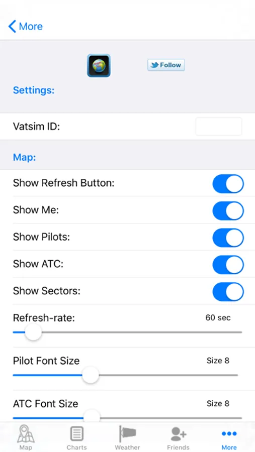VatMap is based on the build in map of your iDevice. It plots the online pilots and controllers on your map right in the palm of your hand!