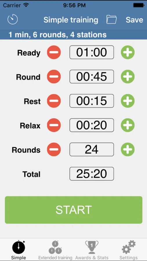 You can always set your own training schedule with number of rounds, ready, round, rest and relax times. Before exercise you can set up preparation time with ready time and after you finish use relax time for cool down. Download and Upload your training plans!