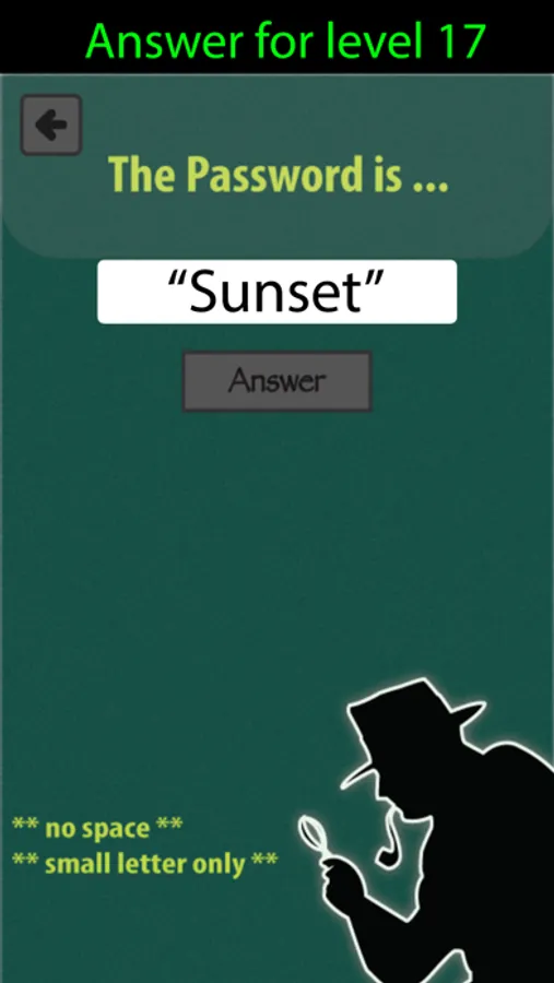 Each level contains puzzle that you need to solve and type the correct answer to pass the level. Once you complete the level, next levels will be unlocked. Some levels might need some special tools to solve it.