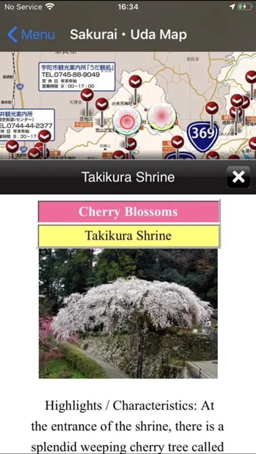 "Sakurai Uda Burari" is a map that displays wide-area sightseeing information and map information in the Sakurai Uda wide area (Sakurai City, Uda City, Soni Village, Mitsue Village), and compares old maps and illustration maps with current maps. It is a sightseeing tour support application that can tour sightseeing spots.
