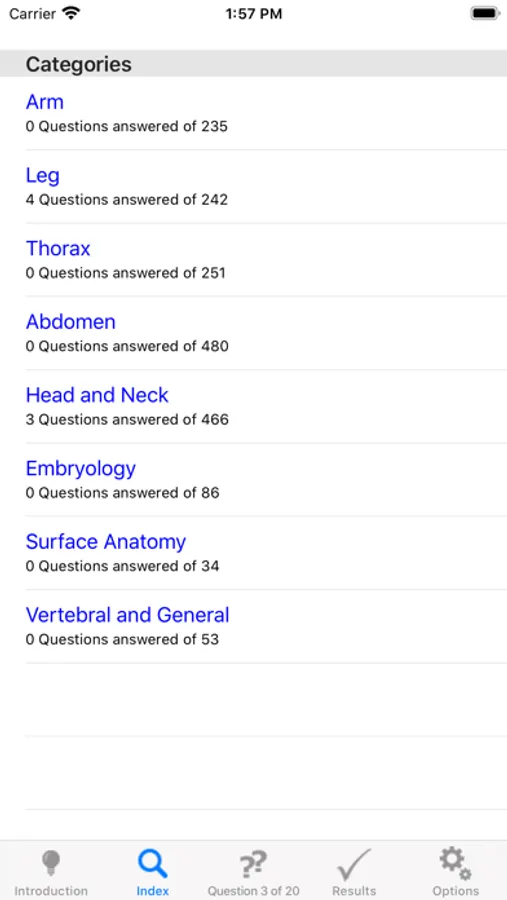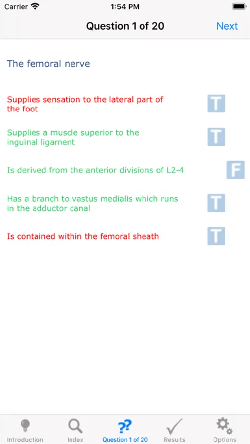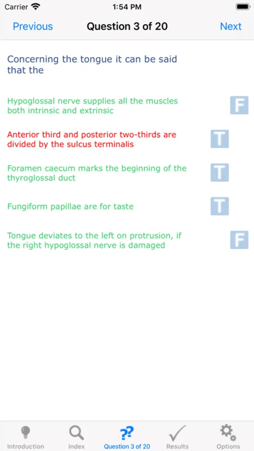 This app contains over 1800 Anatomy Multiple True False Questions (MTF) split into 8 categories.