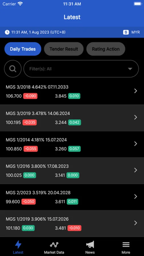 Get instant access to the Malaysian Bond and Sukuk markets with this powerful app and stay on the ball 24/7 wherever you are. Perfect for Traders, Investors, Analysts and Risk Professionals.