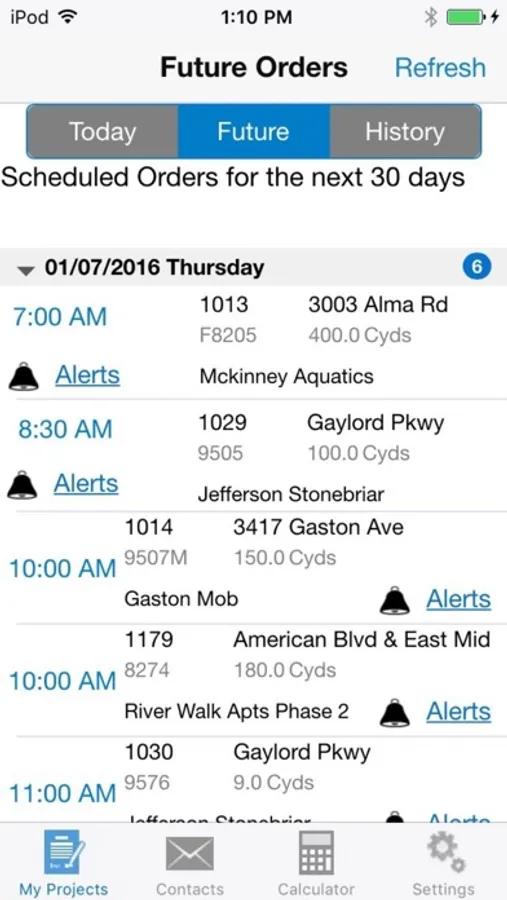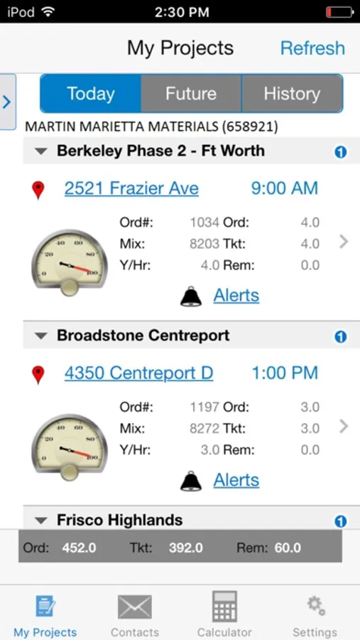 The ReadyTrac app allows the customers unprecedented access to real-time delivery information. It delivers online information that enables managers, superintendents, and dispatchers to track ready-mix orders on a real-time basis. With a mobile GPS infrastructure driving READYTRAC, customers are able to view plant departure and job arrival times, as well as status on ground placement of concrete. By having access to crucial order information, customers are able to improve crew efficiency and productivity by allocating on-site resources accordingly.