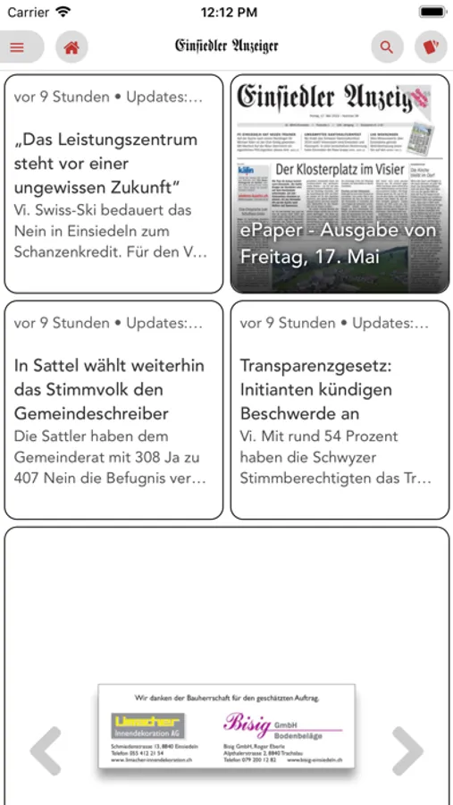 Der Einsiedler Anzeiger bringt die aktuellen News und Inserate aus den Gemeinden Einsiedeln, Unteriberg, Oberiberg, Alpthal und Rothenturm, aufs Internet, Facebook, Twitter, öffentliche TV Bildschirme, Tablets und Smartphones. Zu Hause und unterwegs - die Einsiedler Anzeiger App hält sie jederzeit auf dem Laufenden mit News und Angeboten.