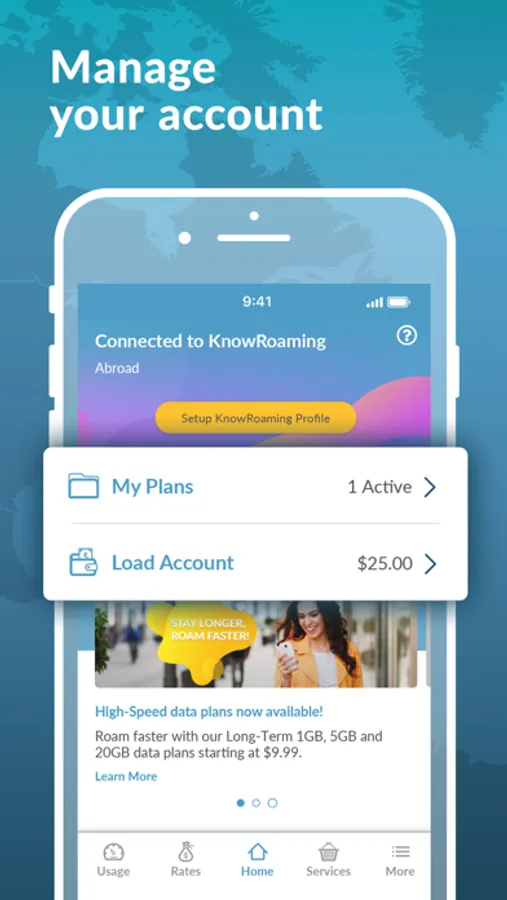 Manage your KnowRoaming account right from your iPhone and iPad! Add credit to your account, view your usage statistics, and check information on your call/data history in real time! The KnowRoaming app makes it easier than ever to stay on top of what you are spending while traveling.